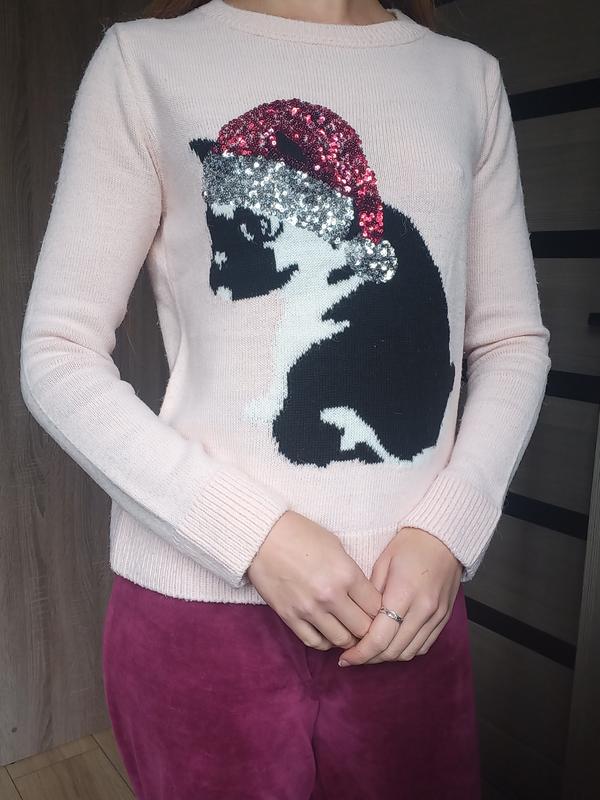 Замечательный свитерик, согреющий в холодную пору. Шапочка песика вышита пайетками, все на месте, идеальное состояние.