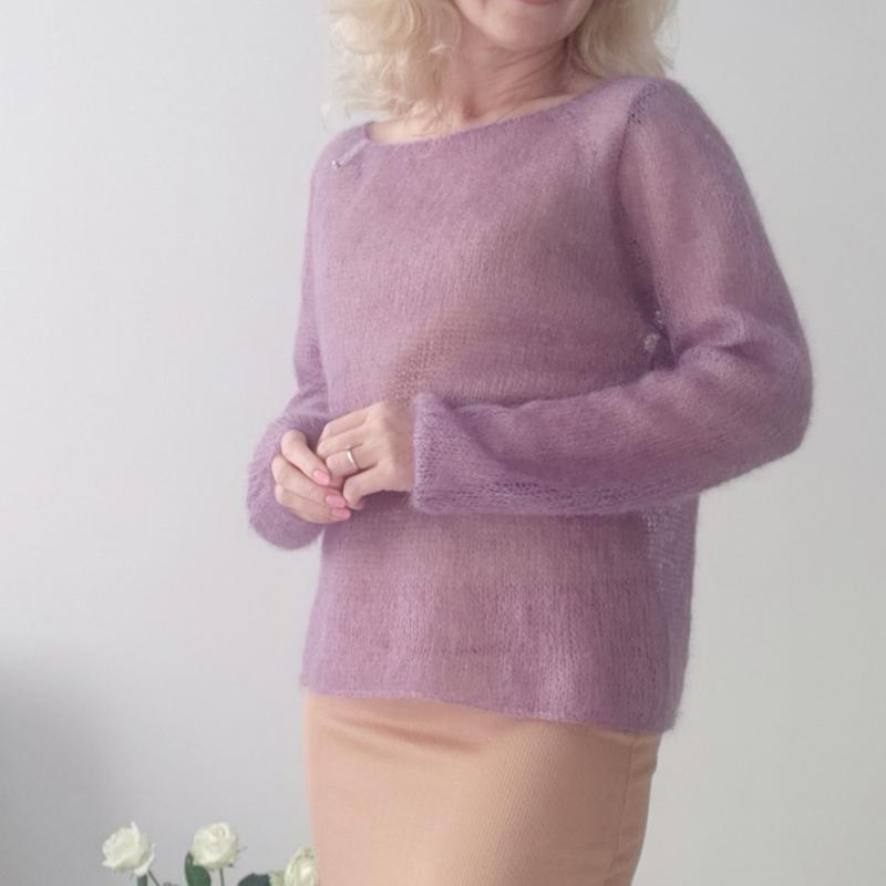 Свитер - паутинка связана с мохера на шелковике. На ощупь очень мягкий, шелковистый и пушистый. Склад: 70% мохер, 30% шовк. Замеры: ширина 53 см, длина 54 см. Вдягнено на 88-70-90. Дополнительные замеры надам на запрос. Можно показать видео. Цена 2100 грн