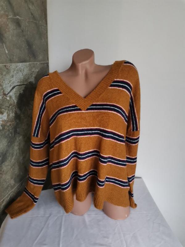 Светр жіночий великого розміру Гарно тягнеться, колір дуже гарний Новий , сток Довжина сзаду 57, спереду 56 Ширина под проймой 74 Довжина рукава від горловини 70 см Реально дуже гарний светр, під гольфік зимою буде гарно виглядати