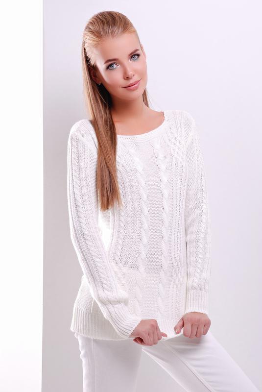 Вязаный женский свитер. Размер универсальный 44-50. Состав - 50% шерсть 50% акрил. Длинна свитера 63 см, длинна рукава 63 см. Удобный однотонный свитер прямого силуэта из качественной мягкой пряжи. Красивые элементы вязки придадут вашему образу больше женственности и игривости.