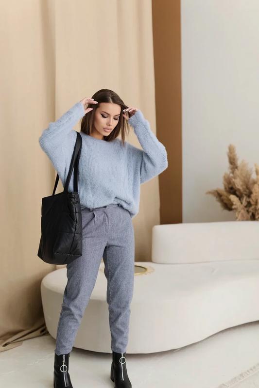 Теплый джемпер оверсайз из мягкой ворсистой вязки 42-50 размер разные цвета голубой