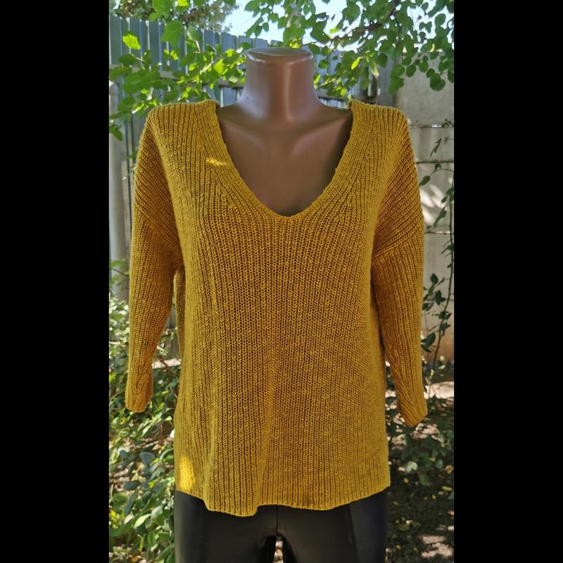EXPRESS Горчично-желтый свитер с перекрещивающимися спинками и рукавами 3/4 XS Ціна домовна