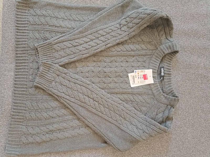 Очень красивый мягкий теплый свитер. Спереди и на рукавах вязка объемные косы. По бокам по резинке разрезы. Замеры: НОГ - 56 см. Длина рукава от горловины - 67 см. Довжина светра - 61 см. Выглядит очень красиво.