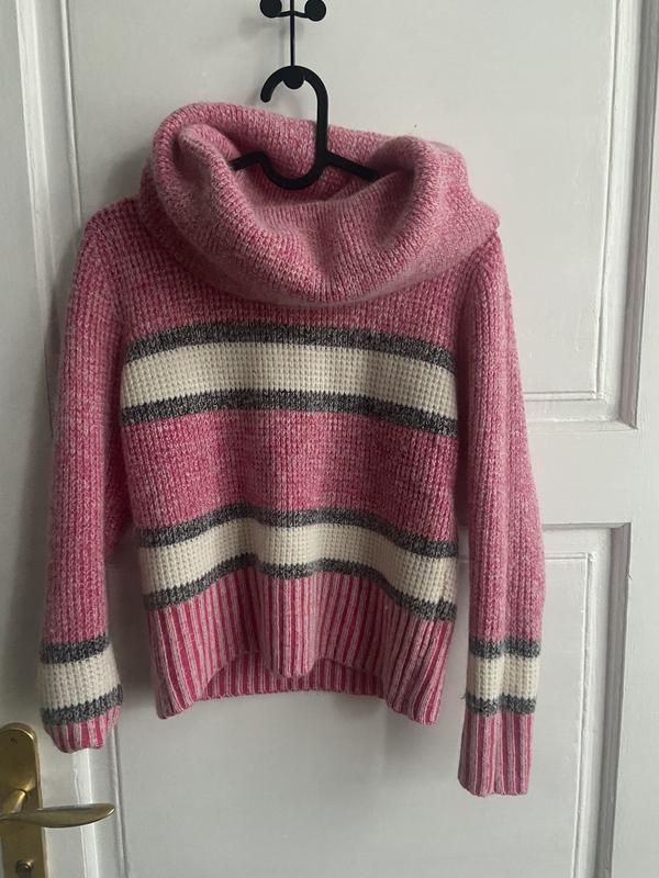 Приятный к телу, целых 80% шерсти ангора. Красивый будет на девочку подростка, красивый Барби цвет. Размер s-m. Стан идеален, как новый, есть косточка от бирки