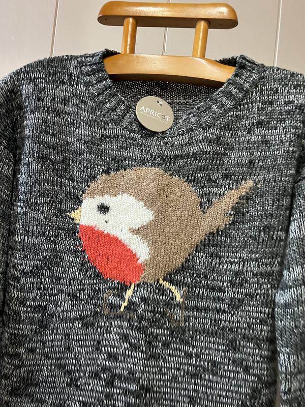 В наличии красивый свитер фирмы APRICOT. Размер указан М/12. Состав: 100% акрил...нитка мягкая и приятная к телу, хорошо тянется. Полуобъем в груди – 53 см и еще тянется Длина – 56 см. Длина рукава от ворота - 72 см. Полуобъем в бедрах – 50 см и еще тянется