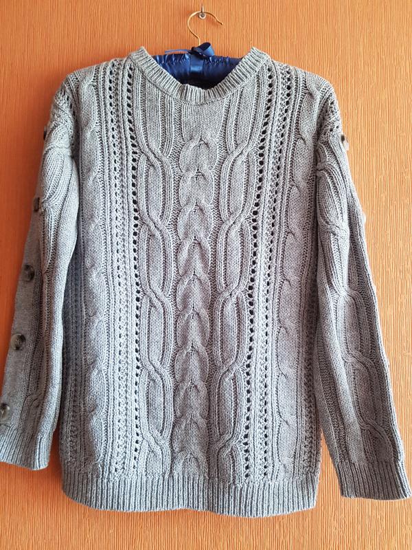 Свитер 40 хлопок, 29 полиестер, 25 вискоза, 6 альпака. Плечо занижено. Цвет серый меланж. плечо+рукав 65, грудь 48, длина 60