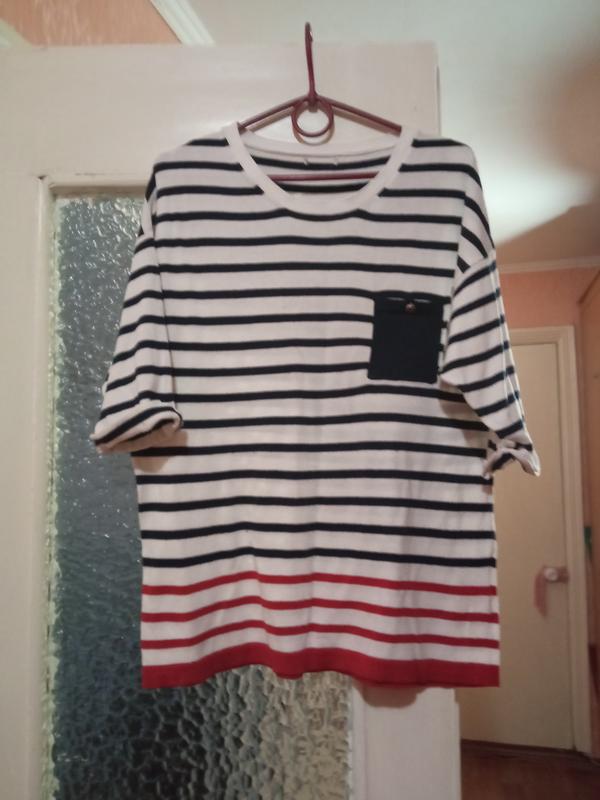 Продам кофточку, трикотаж, в полоску, в красивом состоянии видно на фото. Размер L. Состав виден на фото. Рукав 3/4.