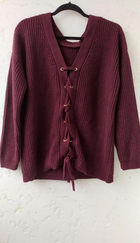 Свитер на шнуровке.Пог-60,Пот-53,плече-23,рукав-49, длина-65.