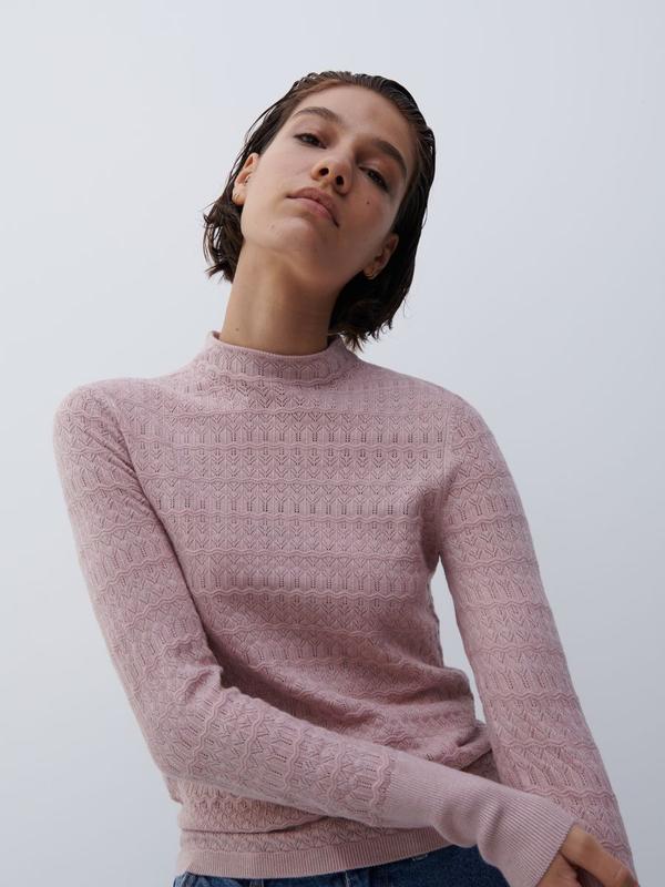 Кофта, свитер, джемпер пыльно- розового цвета в белую крапинку, размер S, можно и на M. Длина 54 см, ПОГ 44 см, плечи 34 см, длина рукава от плеча 56 см. Мягкий и приятный к телу, в составе вискоза и эластан , так как тянется.