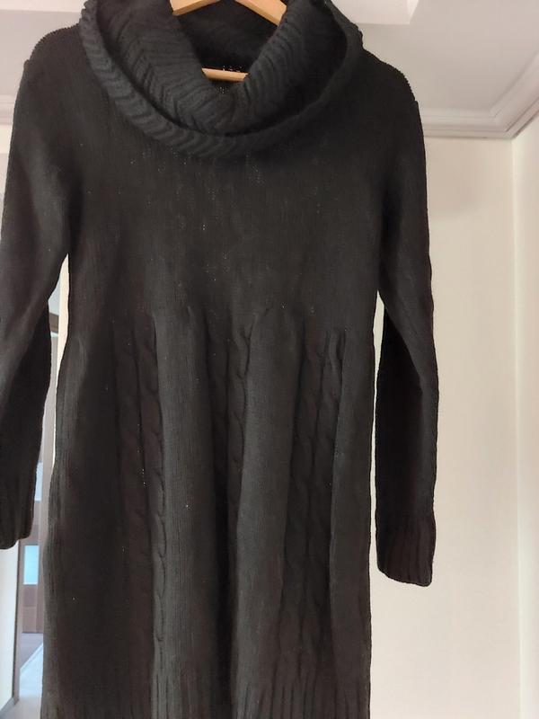 Красивый удлиненный свитер, как туника, в составе альпака. Насыщенного черного цвета. Размер от Xs до М. Теплый и стильный.