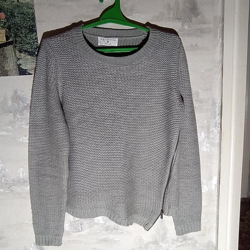 Свитер с асимметричным передом.. Бирки отсутствуют, но на ощупь в составе много хлопка. ПОГ 49, ПОТ 48,пля 37, низ 50, длина по спинке 52, асимметричный угол 12, рукав 65 хорошо тянется