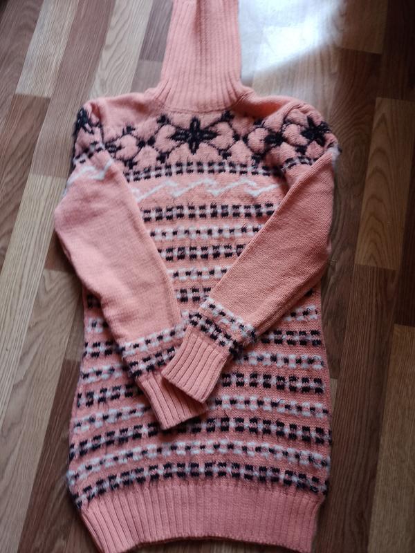 Свитер ярко оранжевый толстый, теплый, шерстяной 44 размер с воротником хомут ПОГ 45 Длина 74 Ширина плеч 39 Длина рукава 59 см