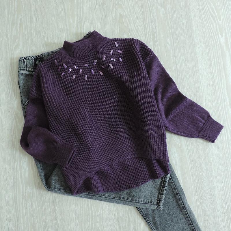 Фіолетовий в'язаний светр oversize з камінчиками