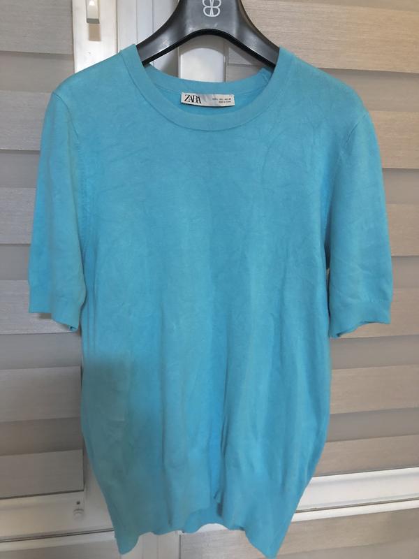 Трикотажная кофточка с коротким рукавом снизу на резинке, на размер m-l, длина 56 см, грудь 41 см (#4)