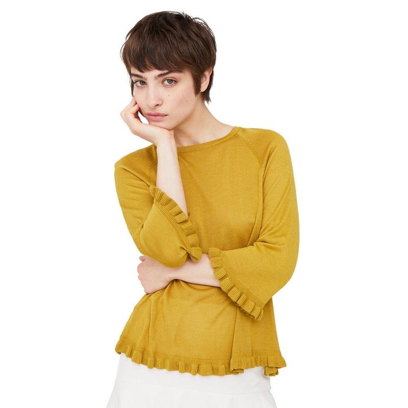 Гірчична кофта з оригінальною відкритою спиною. Колір вживу як на всіх фото крім першого) дуже приємна на дотик, дуже жіночна. Хороший склад. Довжина виробу 51 Довжина рукава 50 Обʼєм грудей 100