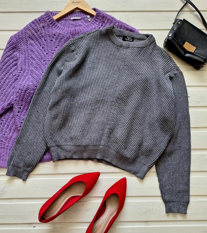 Теплий светр темно-сірого кольору. Бірочки зі складом пряжі немає, на вигляд - акрил. Розмір М, але підійде і на більший, дивіться заміри. ПОГ 61 ПОТ 52 Низ 40 Довжина 56 Плечі 47 Рукав 59