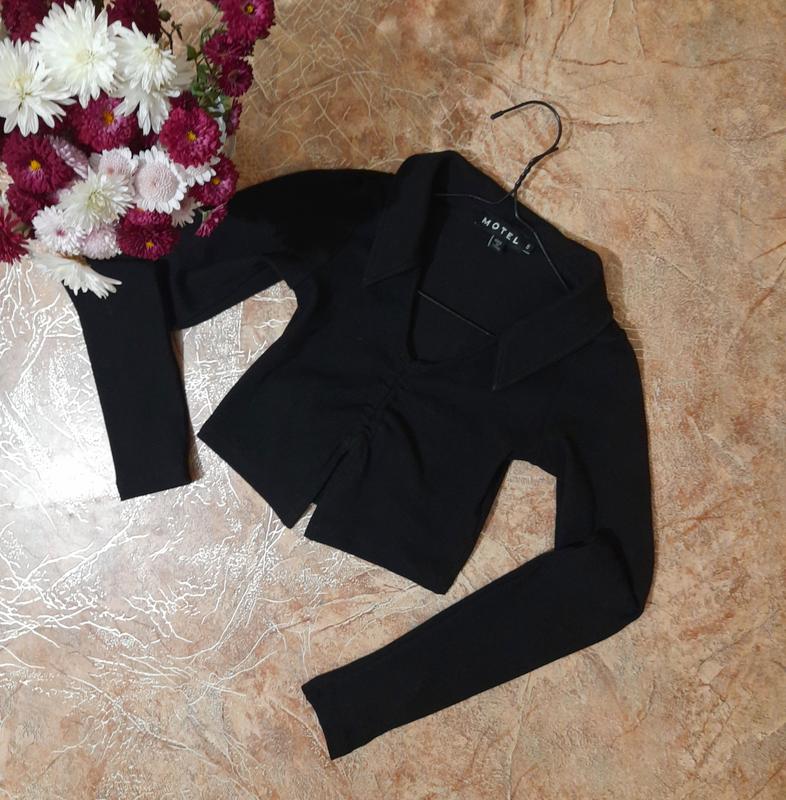 Укороченная трендовая кофточка с длинным рукавом С воротничком Зепеду стягивается