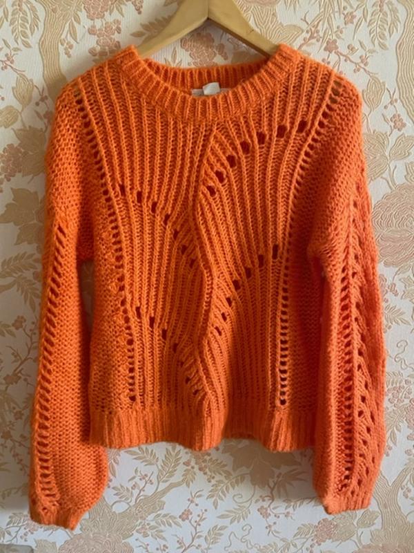 Теплый свитерик 10% мохера, нарядный теплого оранжевого цвета. Написано XS, но по замерам подходит и на М и на Л. Замеры: Плечи 58 см приспущенные рукав 57см, от горловины 75 Пог - 50см длина 55 см