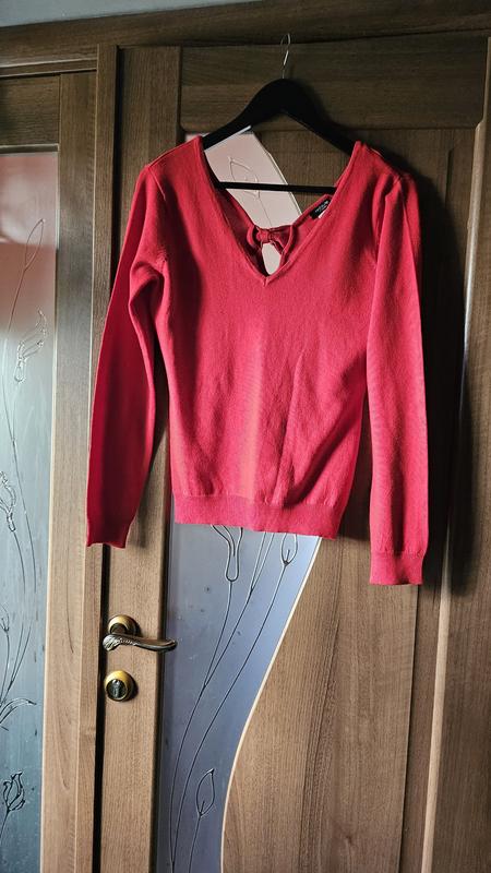 Красная кашемировая кофточка, приятная к телу с оригинальным маленьким слоем формы бантика, на спинке. Производитель Франция. Подойдет на размер S,SM