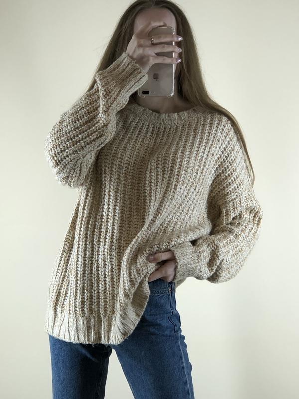 Свитер крупной в ✨ Очень стильно смотрится на теле👆 В идеальном состоянии❗️ Размер указан Хл,на меньше ляжет как на фото(Хс) По деталям в дырект💌