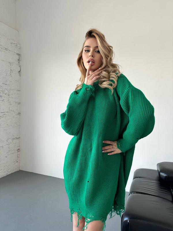 📸 Туніка рванка Oversize в найактуальніших кольорах, можна вдягати під лосінки та ботфорти😎 Відмінна якість, не скочується 👍Виглядає стильно та модно 👌 # 3042 ‼️▪️Виробник Туреччина 🇹🇷 ▪️Колір: зелений ▪️Розмір єдиний 42-46 ▪Тканина-в'язка