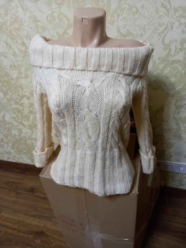 стильний светр з оголеними плечима пог 45, пот 38, пос 42, довжина від плеча 57, довжина рукава від плеча 48 ( 3/4)