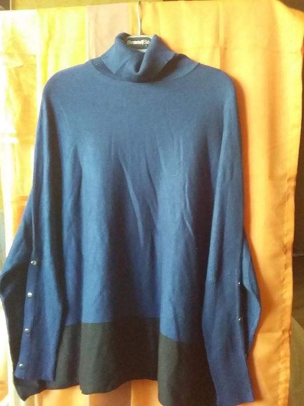 свитер женский оверсайс, вискозный, насыщенный синий цвет (дипломат) размер 16-18. длина 67. ширина 77. узкий манжет с пуговками придаёт изюминку.
