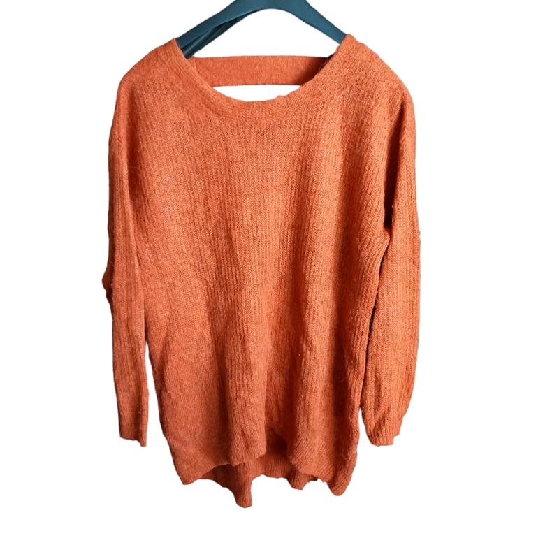 свитер женский размер:14 замеры: длина спереди: 68, сзади: 76 рукав: 50.5, от шеи: 70.5 объем груди:114 тянется дефекты: есть не много катышек Отправляю укр и новой почтой, розеткой