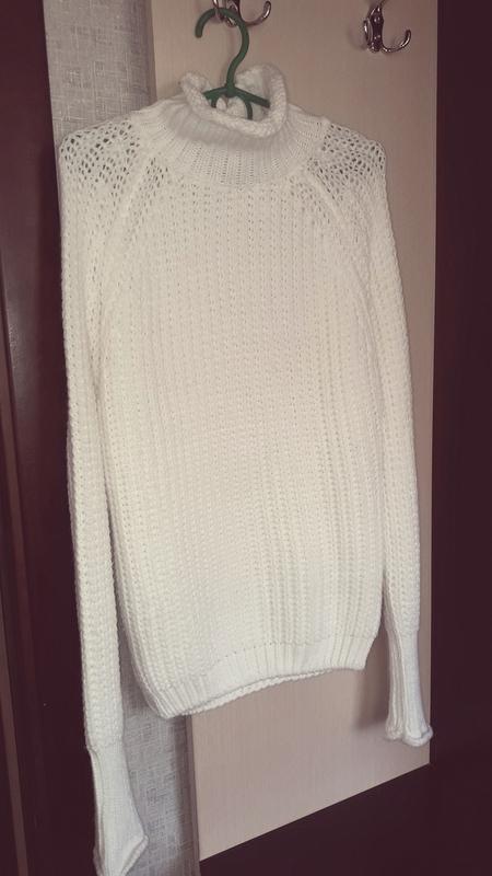 Белоснежный свитерик с оригинальной горловиной и рукавами, замеры снаряжения