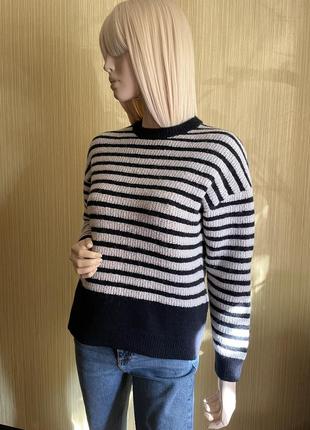 Плотный, мягкий свитер в бежевую полоску. Тёплый. Состояние отличное. В составе шерсть и хлопок Размер указан М
