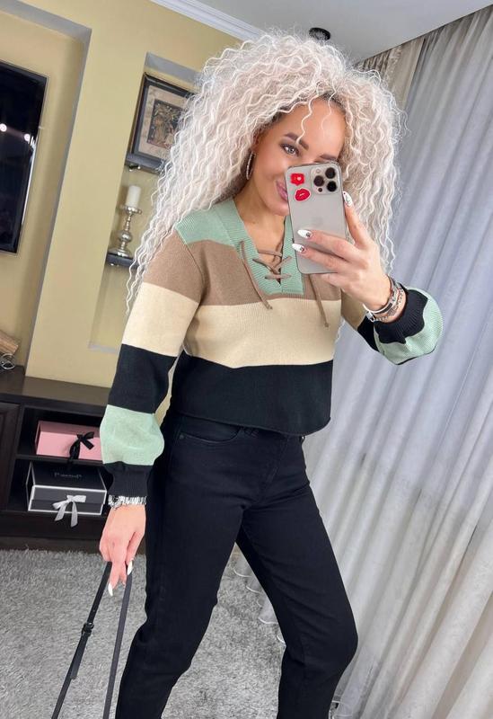💛💙Новинка 💛💙 8123 🌲 Стильная кофточка - топ со шнуровкой Материал машинная вязка • Размер универсал 42/46 • 2 цвета Длина 47, рукав 58 см, Ог 98 • цена 670 грн
