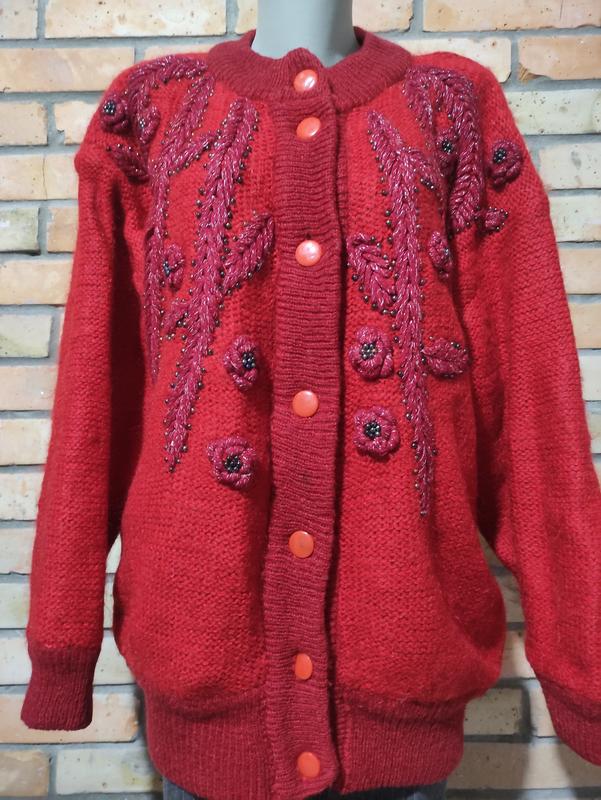 Винтаж кофта свитер кардиган шерсть мохер вышивка.