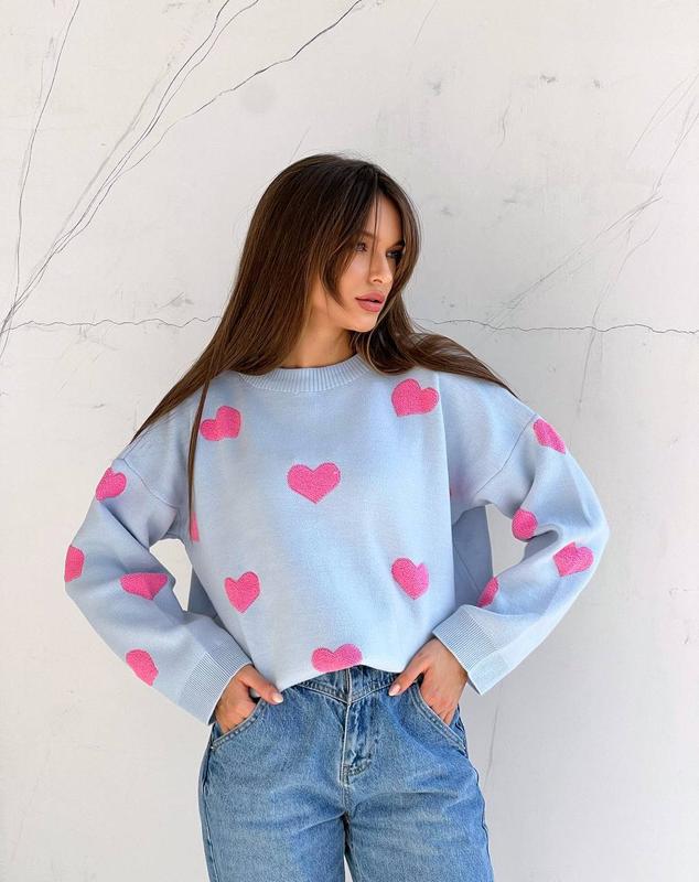 Светр “Сердечко” в стиле Oversize ◽️Модель 305 ▪️Производство - Турция ▪️В‘язка - 70% вовна, 30% акрил ▪️Отличное качество Размеры - оверсайз ▪️Ширина по ОГ - 60-62 см ▪️Ширина по низу светра - 58-59 см ▪️Длина - 64-65 см ▪️Длина рукава от горловины - 68-69 см