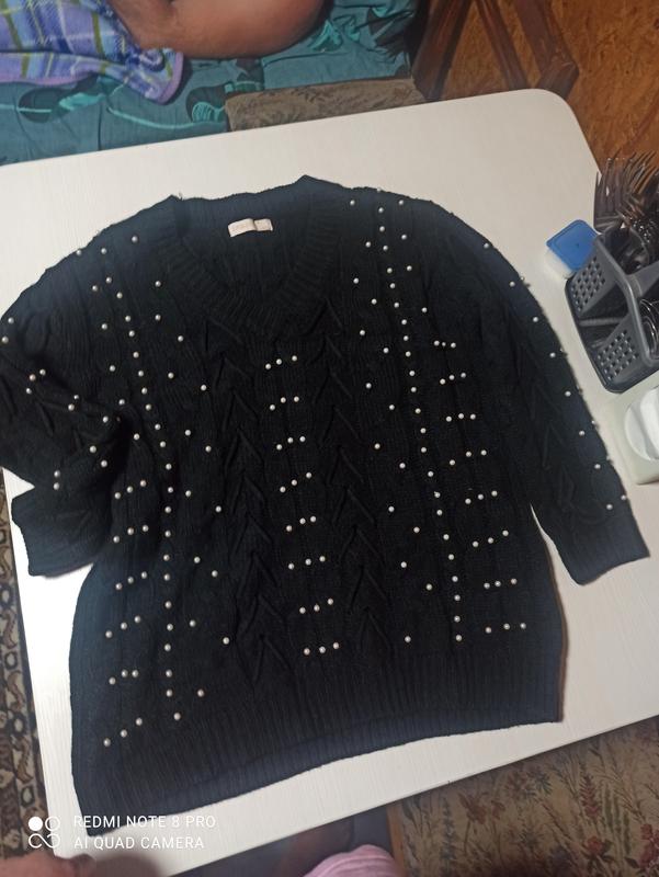 красивый вязаный мирер с белыми бусинами из декольте. размер M-L
