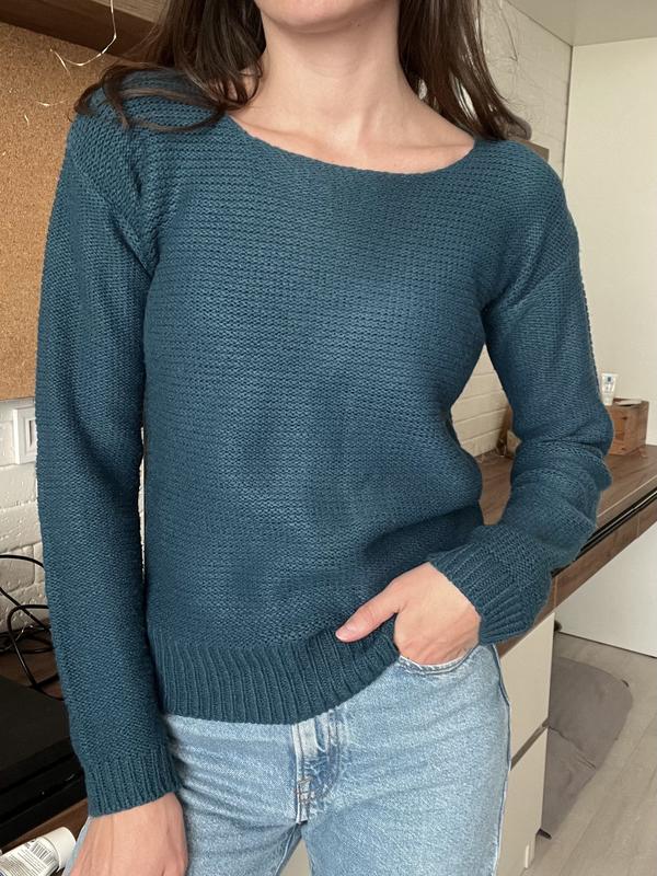 Вязаный свитер темно-бирюзового цвета. Теплый, состояние очень хорошее, без затяжек. Материал акрил. Размер М (подойдет на С). Одягнено на параметри 89-62-90, 174см.