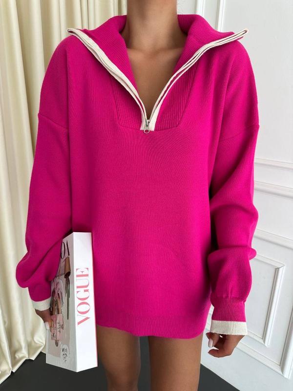 Замечательный свитерик оверсайз, на молнии, с воротником❤️ Мод: 2264 Цвет: черный, белый, фуксия Размер: оверсайз Ткань: трикотаж вязка Цена 720 грн