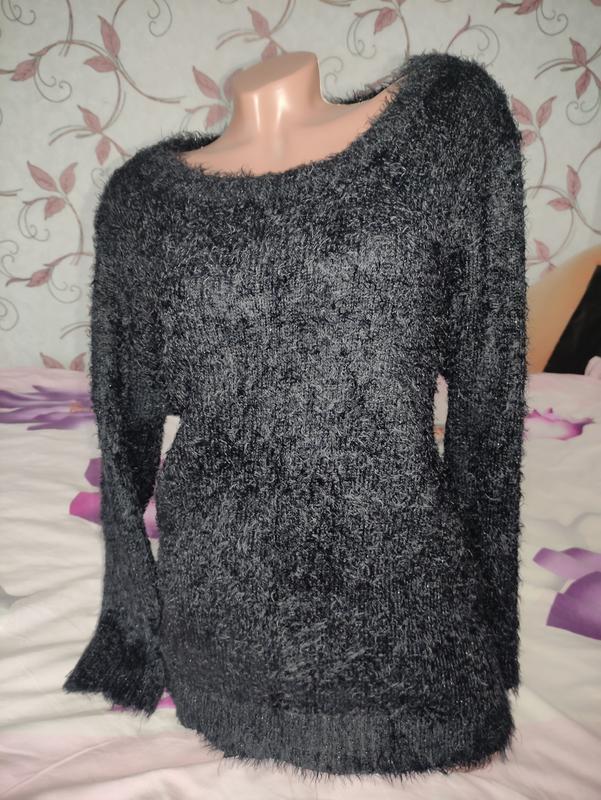 Базовый черный свитерик травка.Очень мягкий и тёпленький.Выглядывает нарядно и аккуратно.Размер 50-54. Замеры Грудь 57см бедра 57 см.талия 52 см.длина 69см.плюс красиво тянется..