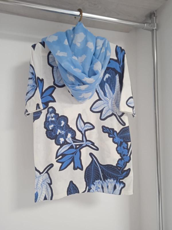 Класична кофтинка з коротким рукавом та оригінальним квітковим малюнком. Легка та зручна. Приємна на дотик. Гладка машинна в'язка. Нитка середньої товщини. Стрейч. Лягає по фігурі. Акуратний виріз. Гарно виглядає з шарфом в тон у комплекті (шарф може бути замінений, але в кольорі). Є розміри.