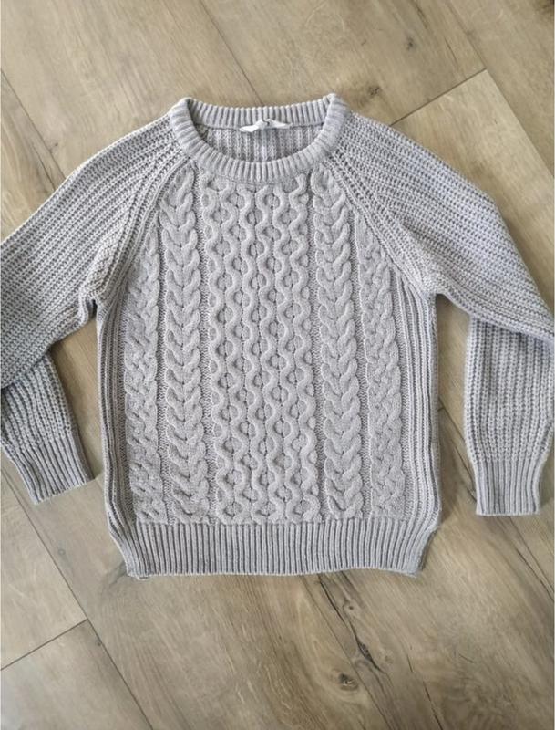 Сірий обʼємний светр, декорований косичками, досить теплий і приємний до тіла.