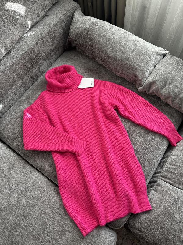 В наявності тепла сукня оверсайз Розмір універсал . Довжина 80 см. Рукав 62 см . Плечовий шов занижений. Колір малина. Гарна якість . Дуже приємна та м’яка на дотик. Склад 100% акрил .