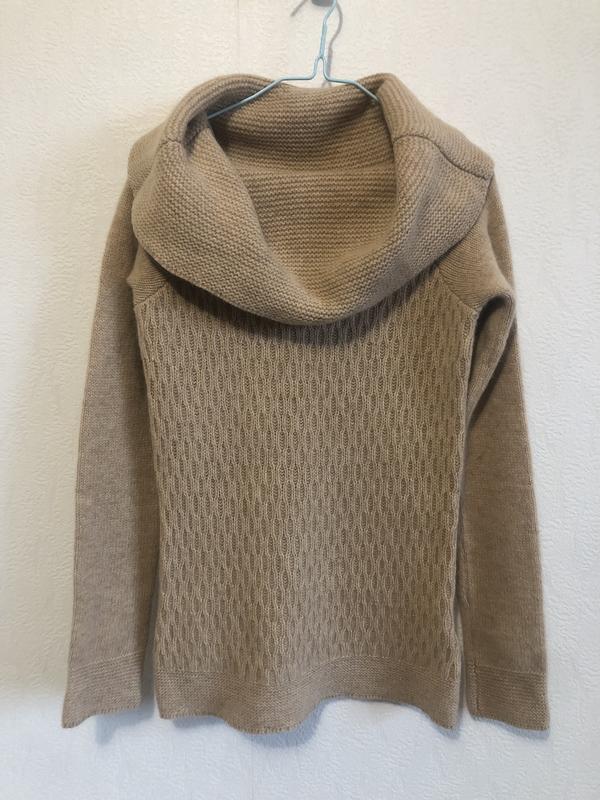 Кофта шерстяна, дуже гарний складник:80% шерсті+ 19% ангори. Тепла і комфортна. Хомут на горловині можна носити декількома способами. Стан ідеальний. Розмір маленький.