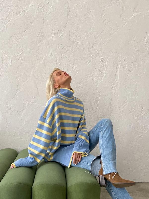 Арт 506 Светер Тільняшка Светер, из новой осенней коллекции, выполнен в стиле Zara и является одноразмерной, объемной и широкой моделью Повседневный женский свитер высокого качества будет отлично смотреться на любой фигуре🌹 Этот свитер станет вашим универсальным изделием по любому поводу❤️ 💦🧺Машинная деликатная стирка при температуре 30° Тканина: 100% бавовна Размер: 42-50 Цвета: Бело-голубой, бело-желтый, желто-голубой, молоко-трава, трава-молоко, бело-черный, голубо-желтый