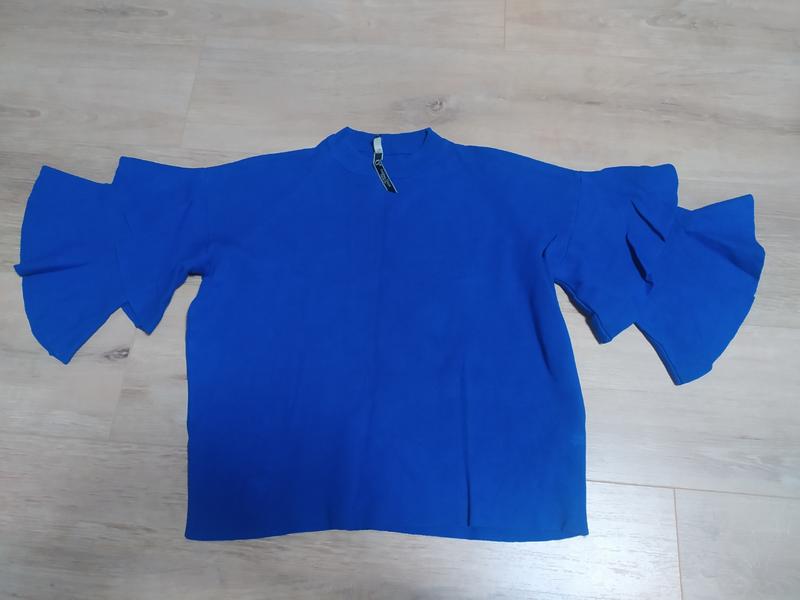 продам кофтинку синю, рукава три четверті, укорочена, кофта яскравіша ніж на фото, заміри уточнюйте, фірма Goldan days Paris.