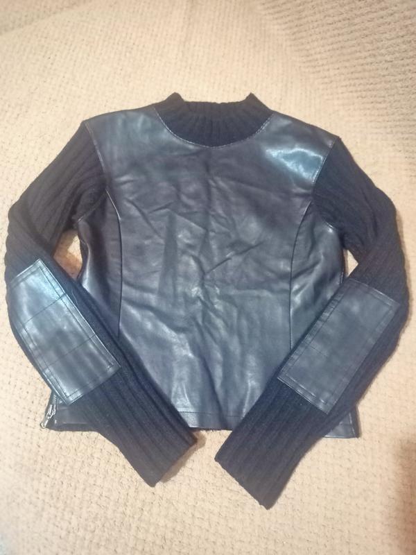 Свитер Freesoul. Страна производитель Италия Состав: Шерсть 50%, акрил 50%. Вставка из ЭКО кожи Замеры по изданию: Длина 50 см, ширина в груди 44 см, в талии 40 см. Модель приталенная. Застёжка молния с боку.