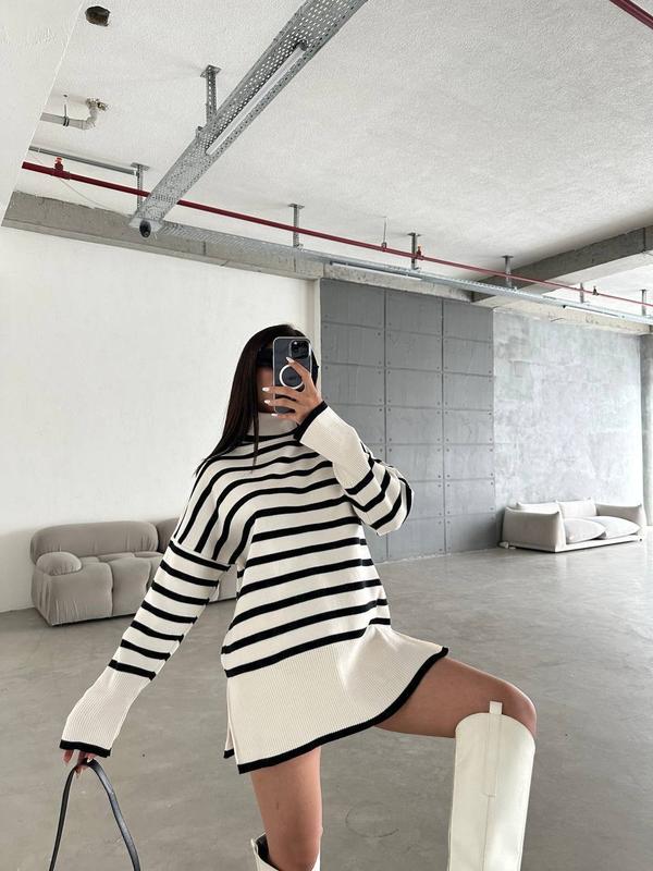 Удлиненный полосатик под горло с разрезами по бокам хит продажи 2023 г💎 Отличное качество 🇺🇿приятная к телу # 0181 🫶Реал фото👌 ▪️Производитель Турция ▪️Цвет черный и белый ▪️Размер единый 42-46 ▪️Состав Акрил 70%, Шерсть 30% ▪️Цена 639 грн 🔥
