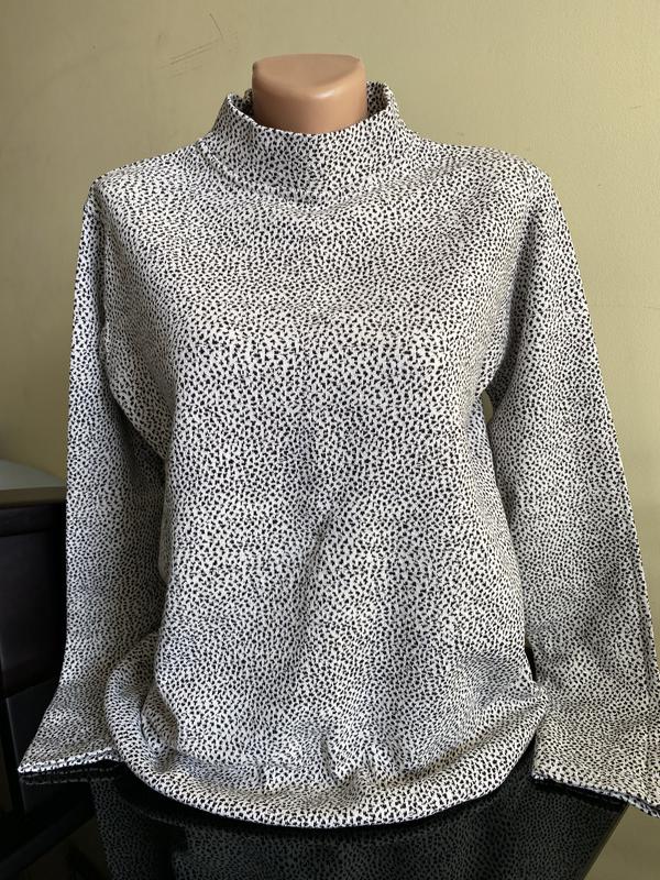 Классный, тёпленький женский свитер-гольф в принт, L размер. Отличное качество, 50% хлопок, 50% акрил. Без нюансов. 📌Замеры: Длина от плеча 64 см Ширина под подмышками 55 см Длина рукава 60 см Ширина плечей 41 см