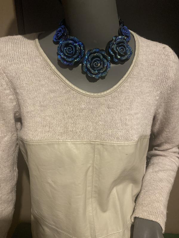 Теплая туника, кожаная вставка (экокожа). Длина 60, рукав 60, плечи 35, пог 45.