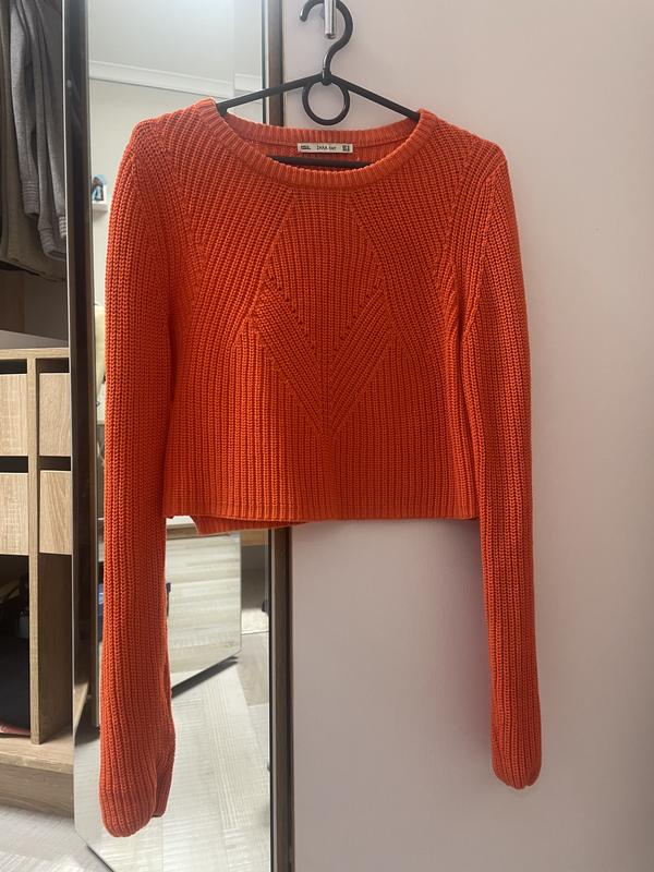 Не могу сказать что свитер теплый, подходит на осень/весну, цвет яркий, состояние на 8/10 Размер М, но может подойти на S