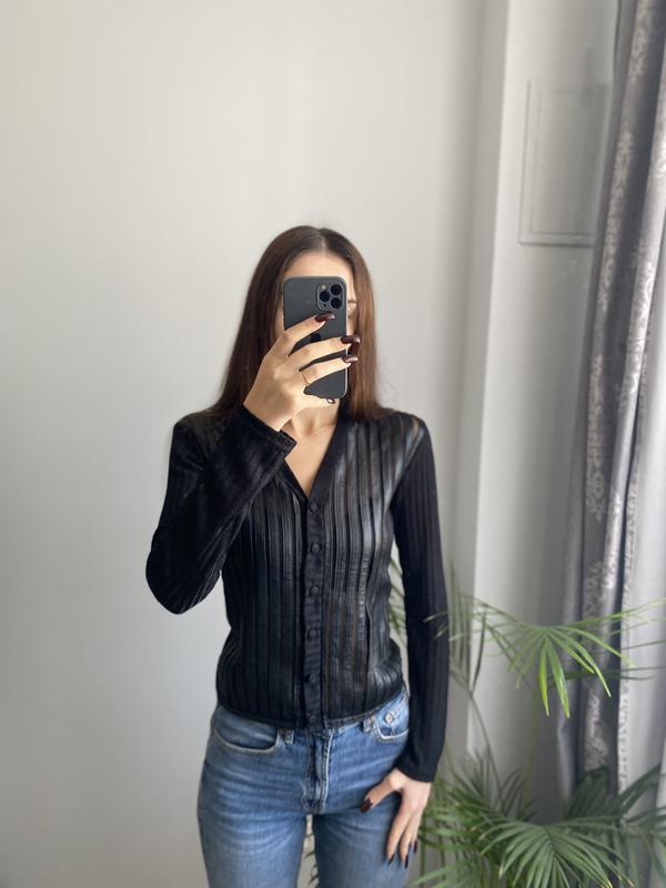 Красивый свитер в кожаную полоску Размер- c, м Стан нового