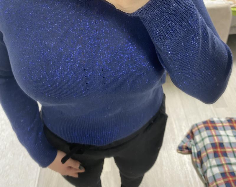 Купленный во Франции, на распродажа за 10 евро. Новый, в носке не был. Размер S/M. Очень круто мерцает, тоненькая люрексная нить. Блеск не навязчивый.